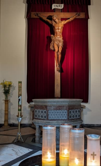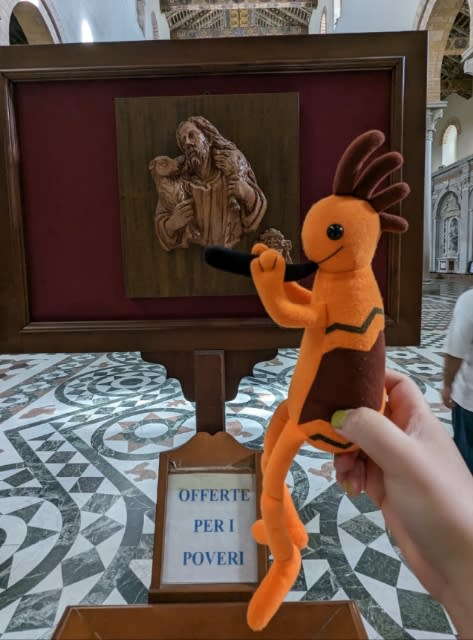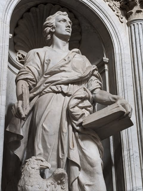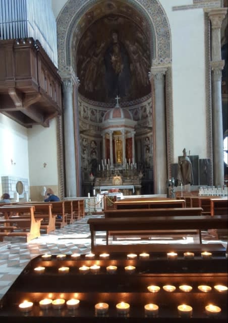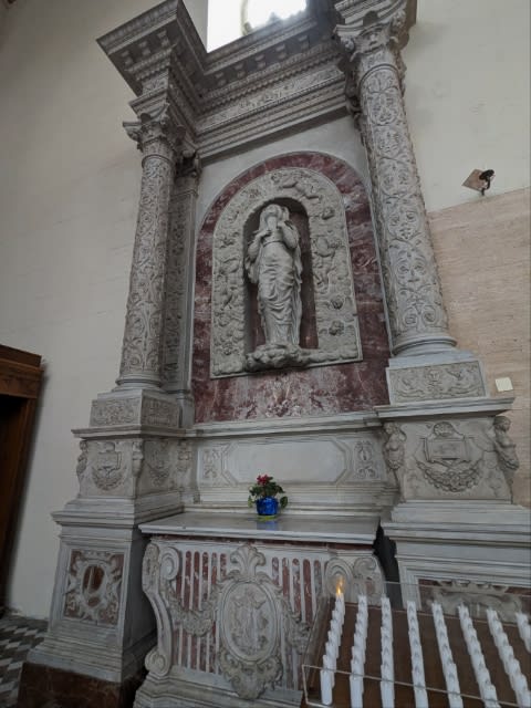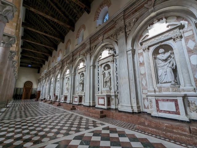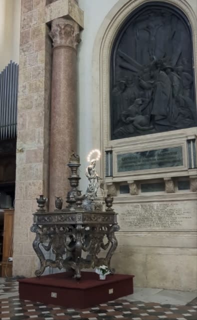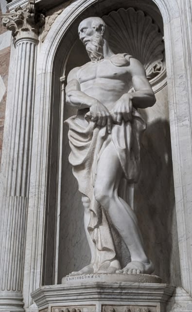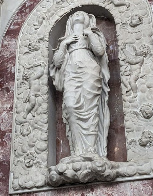 側廊には昔の聖人の像が並んでいます。それぞれに名があるんでしょうがよくわかりません😿