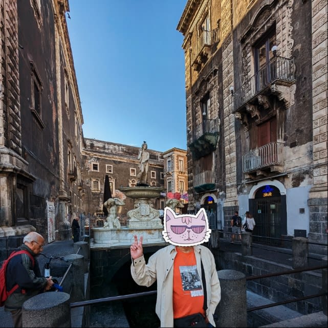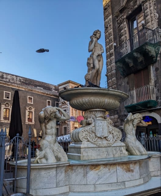 ドゥオーモ広場の中心にあるこちらの噴水はLiotru(リオトル)と呼ばれ住民に愛されているそうな。