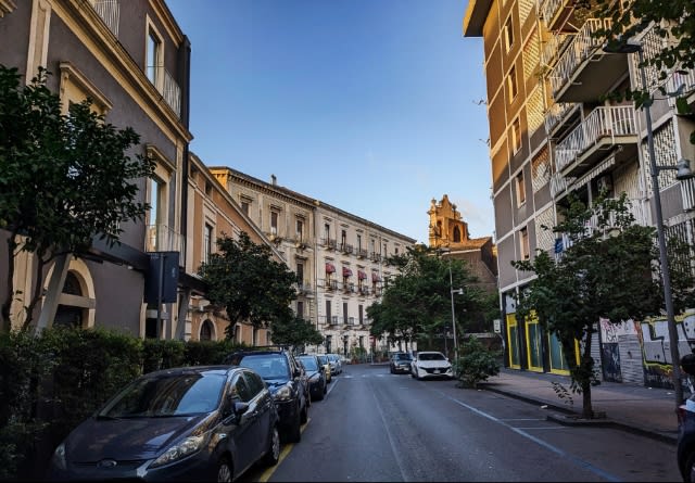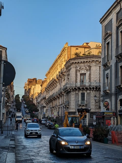 カターニアは巨大な朝市が複数箇所あるので、その準備の為、車や人が移動している感じ。
