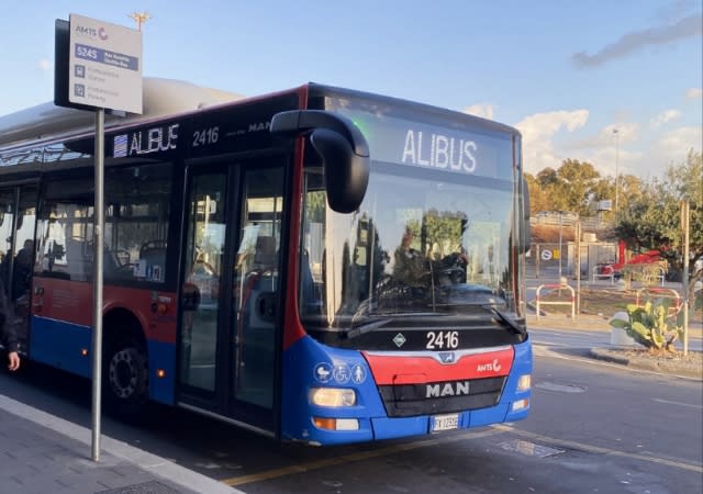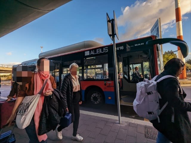 色々調べた主人が、何とか探し当てた空港までのアリバス(Alibus)停留所。
