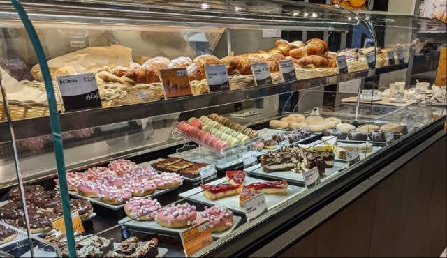 甘そうなドーナツやらパイがわんさか並んでいた。