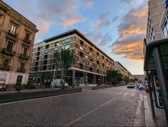 早朝、アパート前の大通り(Corso Sicilia)は比較的静かです。