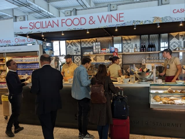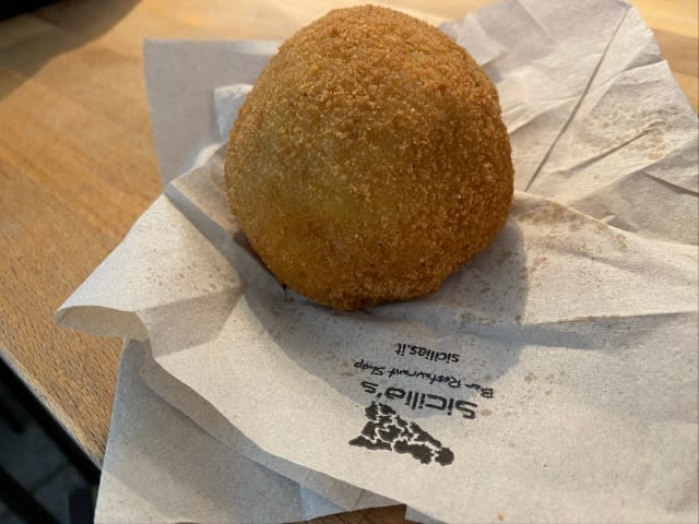 最後の最後に、アランチーニを食べようと、カフェへ立ち寄ります。