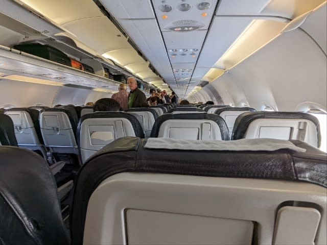 シートピッチ、あまり広くはありませんが、短い時間なので問題なし。
