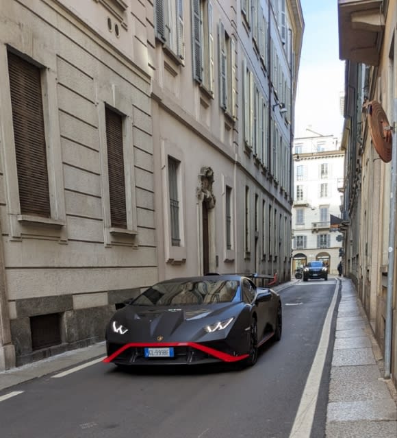 細い通りをブンブン言わせながら通るスポーツカー。