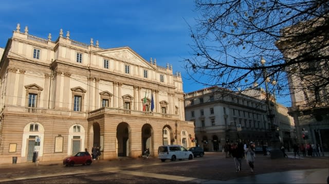 さて、アーケードを通り抜け、スカラ座前の広場(Piazza della Scala)にやってきました。