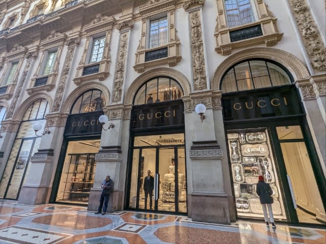 モンテナポレオーネ通りには様々なブランドショップがあり、ウィンドウショッピングを楽しめます。